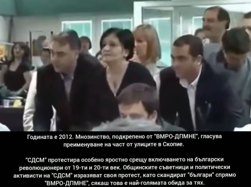 В Общинския съвет на Скопие, общински съветници на партия СДСМ (сега управляваща Северна Македония), заедно с предишния кмет на Скопие, Петре Шилегов (2017 – 2021 г.), скандират, крещят с явна омраза: „българи… българи… българи“ като най-жестока, спрямо техните отродени разбирания, обида, насочена срещу конкурентната им партия ДПМНЕ.